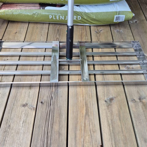 Denne dressriven er laget av rustfritt stål, noe som gjør den både lett og fleksibel. Den er det perfekte verktøyet for å raskt og effektivt jevne ut ujevnheter i gressplenen din. Med sin sterke og pålitelige konstruksjon er den designet for å fange opp mindre steiner, noe som gjør det enkelt å fordele toppdress, plantejord og dressand. Med denne riven blir gressplenvedlikeholdet en enkel og smidig oppgave.