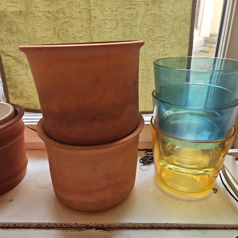 Små innepotter med dreneringshull gis bort ved kjøp av pyntepotter.