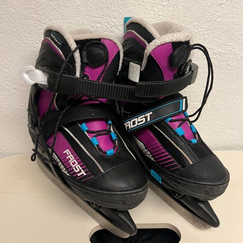 Her har dere skøyter i mange år ser nesten ikke brukt ut. Disse kan stilles på fra str 30 til 34. 😄