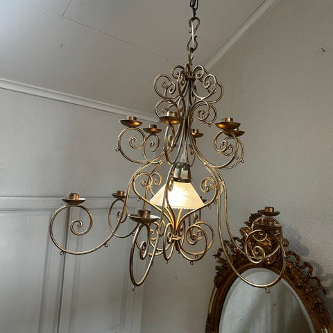 vird. solgt. Høyde lampe: 49 cm. + tak oppheng. Lampen er i bruks stand.
