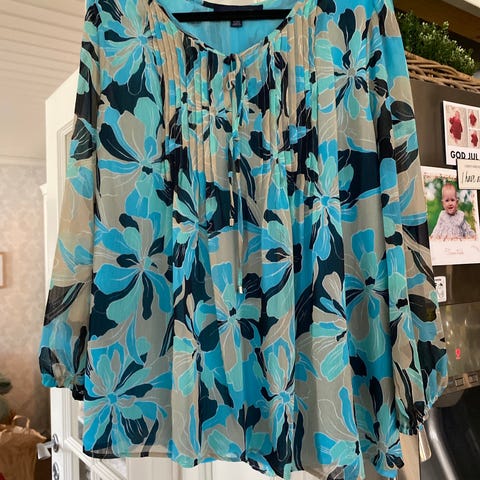 Nydelig vintage bluse fra Eftir M\L rund hals, usikker på stoff men syntetisk. Nydelig print. Selges da jeg har for mange pen en policy om 1 inn og 1 ut.