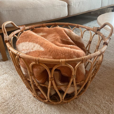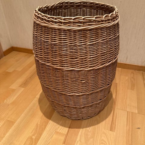 Kul kurv til oppbevaring av puter, teppe, pledd.