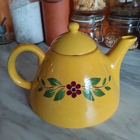 Vintage blått og hvitt hus. CKAO Tekanne, Hyttedekor, Kjøkkendekor; Fløtekanne