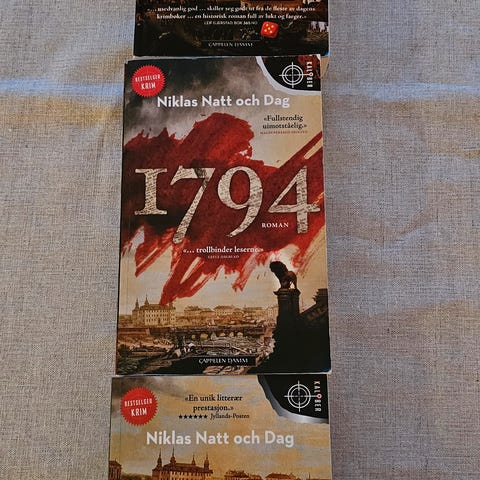 En spennende og annerledes krimfortelling. Selges helst samlet,da alle tre bør leses etter hverandre. Historien er så talende beskrevet at du nesten kan kjenne stanken av Fatburen eller Flugmøtet . Mye vold og groteske ugjerninger, fattigdom og urettferdigheter som røsker litt tak i leseren. Bøkene er pent behandlet, liten skade på permen på den ene, 1795 er tilnærmet som ny. Sender med Postnord og tar vipps eller du kan velge Fiks ferdig.