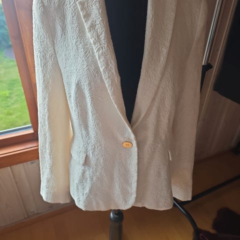 Sort blazer med oppbrettede ermer med stripete for fra Zara selges. Blazeren er lett innsvingt unloved, har splitt bak og lukkes med en knapp foran. Størrelse small. Pent brukt.