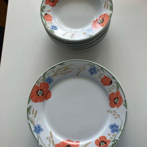 Selger 6 stk.middagstallerker, 6 stk. dype tallerker og 5 stk. frokosttallerker fra Paloma.