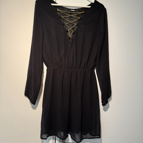 Bik Bok festkjole i størrelse M. Kjolen er hvit og egnet for festlige anledninger. Den har et elegant design som passer til mange ulike arrangementer.