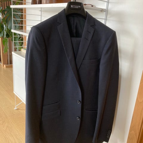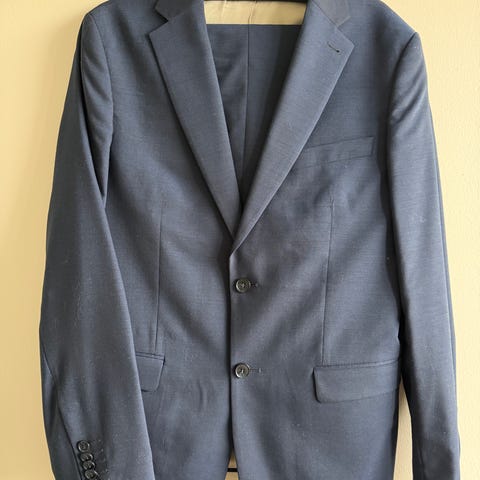 Pour dress fra Follestad selges - Størrelse B46 i jakke og B96 i bukse. Buksen er lagt litt ut i livet hos skredder, knappen på dressjakken har falt av men har den liggende.