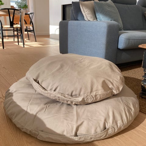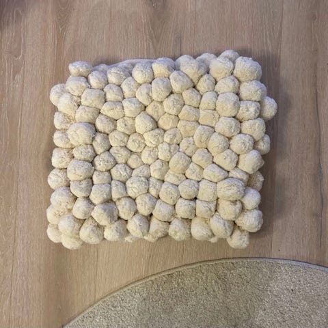 OFF-WHITE RUND HEKLET DUK - 43 x 43 cm.