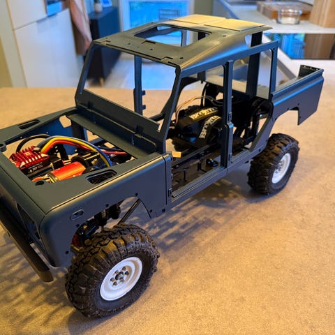 Er montert på et tamiya 6x4 chassis nå men skal være enkelt og montere på hvem som helst andre tamiya 1:14 chassis.