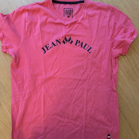 Rosa/korallrød Jean Paul herre t-skjorte med blått trykk i str. XXL