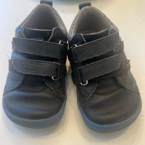 Barfotsko i skinn, str 23. Slitte på tåa og trenger å pusses. Mye bruk igjen