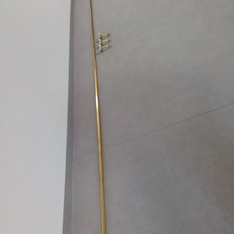 10 ringer med klyper på (innv.dia ringer ca 3,5), veggfester og stang(dia ca 3 cm, 150cm lengde) (mangler dessverre endene på stanga)