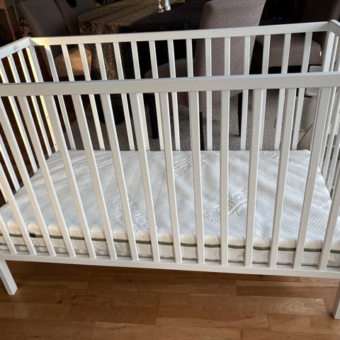 Samlet nypris er over 3800. Selges samlet (sprinkelseng, madrass og madrassbeskytter) for 950 kroner.