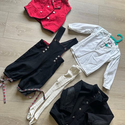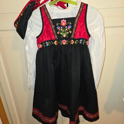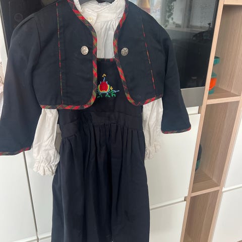Jeg selger en bunad fra småtroll i str. 92. Med fin jakke til fra by-torinn i str. 98, men passer fint til bunaden i str. 92. Skjorte fra kids world i str. 92 og kyse fra småtroll i str. 50 følger også med og et forkle fra småtroll i str. 92. Forkle trenger å strykes.