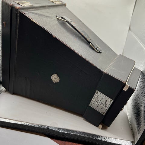 Denne er antik foto kamera bare mangler foran glass så selger litt biligere antik foto kamera