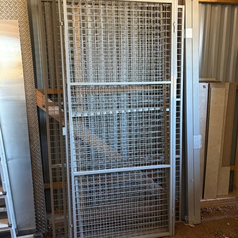 gittervegg, bodvegg, lagervegg, stålgitter, gitterbur, industrivegg, nettingvegg, stålvegg, lagerinnredning, bodsystem, sikringsvegg, sikkerhetsvegg, nettingpanel, burvegg, brukt bodvegg, brukt gittervegg, delevegg industri