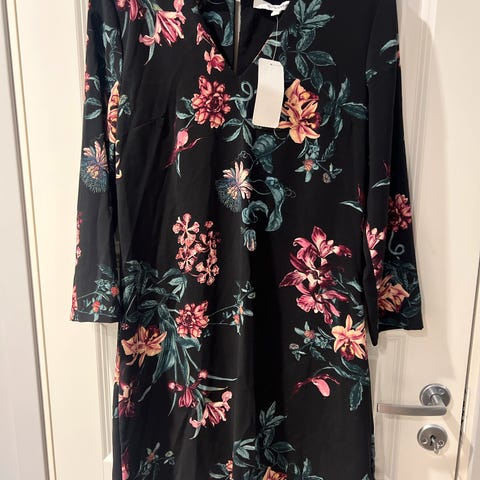 Søt kjole fra HM med lappen på. Marineblå basefarge. Str. 36 men passer også 38. Lommer i siden.