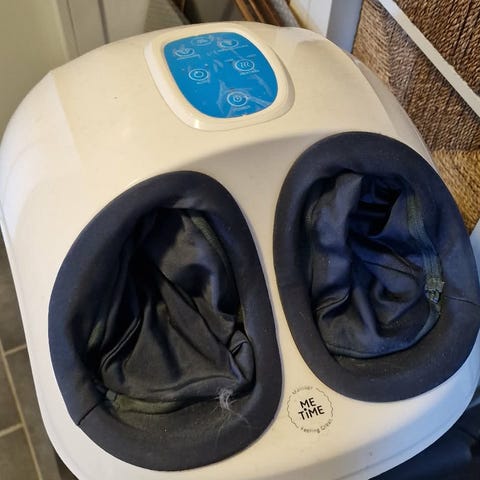 Dette massasjeapparatet fra MeTime er en sann velsignelse for slitne ben. Apparatet løsner opp spenninger og gir bedre blodsirkulasjon. Esken er ikke med