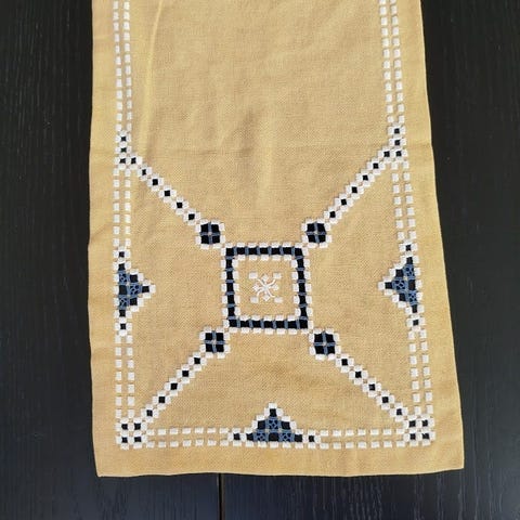 Hardangerduk i fin gul farge mål 23 x 103 cm