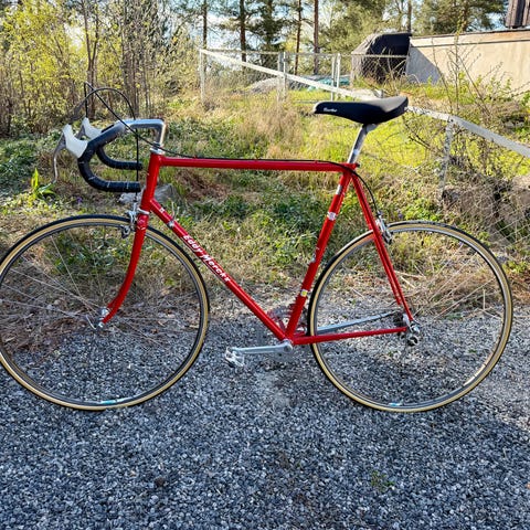 Selger min nydelig De Rosa racersykkel med klassisk stålramme, produsert i Italia. Dette er ekte håndverk for kjennere, med Columbus stålrør og Campagnolo-komponenter, perfekt for de som elsker sykkelhistorie, eller bare ønsker en gøy og vakker vintage-landeveissykkel.