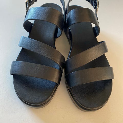 Sorte sandaler fra Roots i størrelse 37. I imitert skinn. Selges da de blir for sjelden brukt 💛 Lukkes med sølvspenne, og er behagelige på foten 🦶🏻