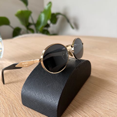 Nye Prada solbriller, gullfarget. Ny pris 4670,-