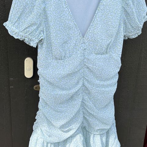 Søt sommerkjole med åpning i rygg, 2 knapper. Kjolen er 90 cm lang
