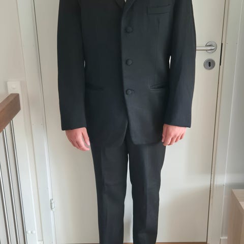 Pen herrefrakk i ull. Den har ingen hull eller mangler, men den ene knappen har ramlet av og må sys på igjen.