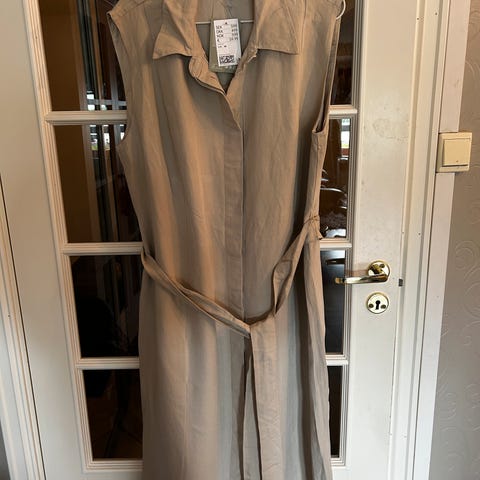 Selger en supersøt og luftig kjole fra H&M i delikat beige og hvit rutet mønster i str 50. Kjolen har en flatterende A-fasong med innsving under bysten og myke folder som faller pent. Kjolen er perfekt for varme dager eller til å styles med strømpebukse og jakke på kjøligere kvelder. Den har rund utringning og korte ermer – enkel og komfortabel, men samtidig feminin og moderne.