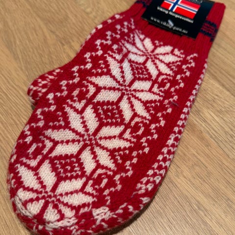 Selger et par av norgesvotten i 100% ull. Helt nye, ikke brukt.