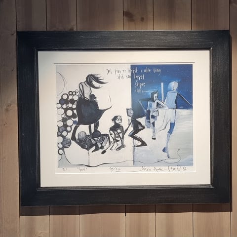 Batikktrykk av Marit Haneberg utgitt i anledning Kværner Egersund sitt 25 års jubileum.