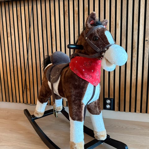 Veldig fin gyngehest med melodi/musikk (ved å trykke på ørene). Kun stått på barnerommet uten å bli brukt.