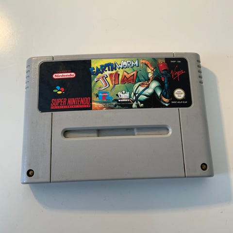 Earthworm Jim CIB med Akrylbeskyttelse. Super Nintendo