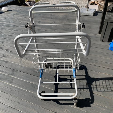 Sammenleggbar tralle som kan brukes på flat mark eller i trapp. Veldi lite brukt, 1 gang med oppvaskmaskin, og et par ganger med noen kasser, ned 6 trinns trapp. Er ferdig med flytting og trenger den ikke. Kjøpt på jula. Ny pris 799,-, selges 400. Må hentes, sender ikke.