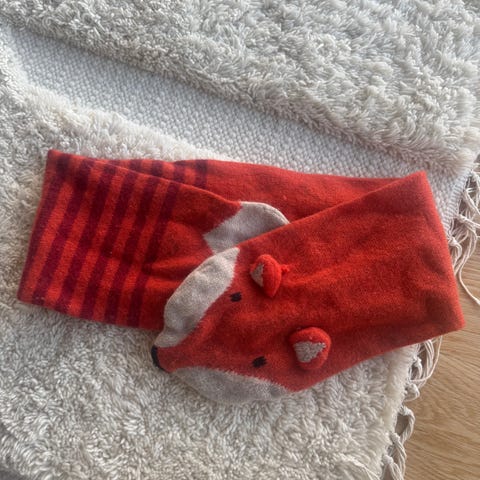 To kjempesøte skjerf til barn, begge formet som dyr.