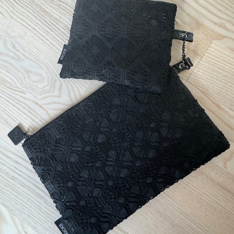 Måler ca 24 cm i lengde og 14 cm i bredde bunnen