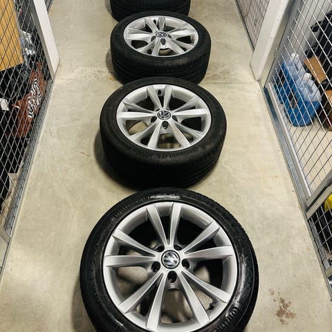 Pent brukte sommerdekk selges( komplett sett). Dekkene er kjør på ca en sesong, og felgen er originale fra 2007(noe bruksmerker på dem men ellers fine) Hjulene har stått på en Volkswagen passat 2007 mod