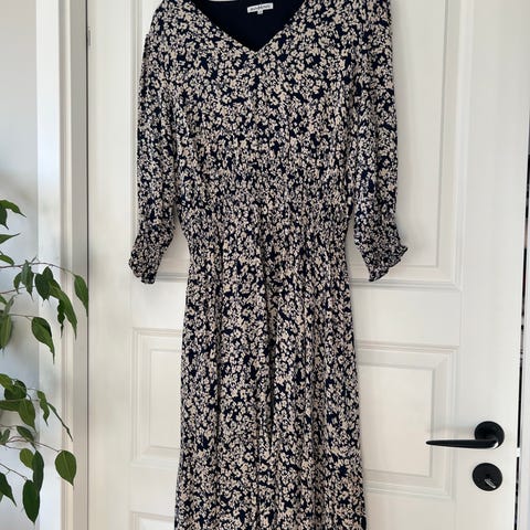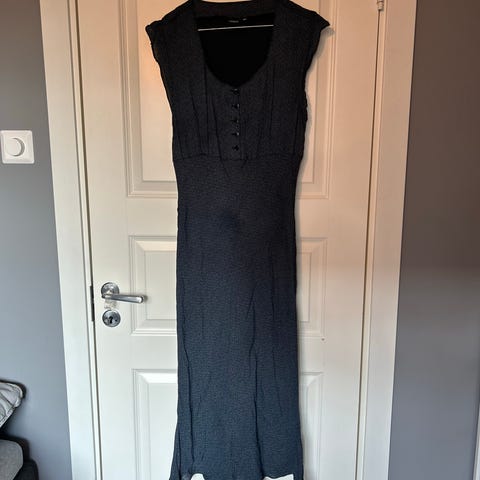 Veldig flatterende kjole i lett stoff med underkjole. Lange armer med puff nederst.