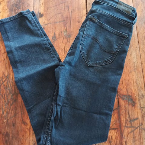 Pent brukt mørk mørk blå Lee Skyler jeans. Str: M. Nærbildene gir best bilde av fargen. Kan hentes i Oslo eller sendes.