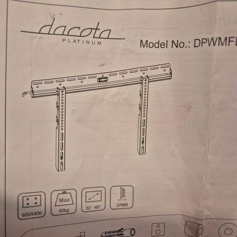 Veggfeste fra Sandstrøm , tåler opp til 40kg, tilt fra 0-12Grad, egnet seg til TV 32" -65",
