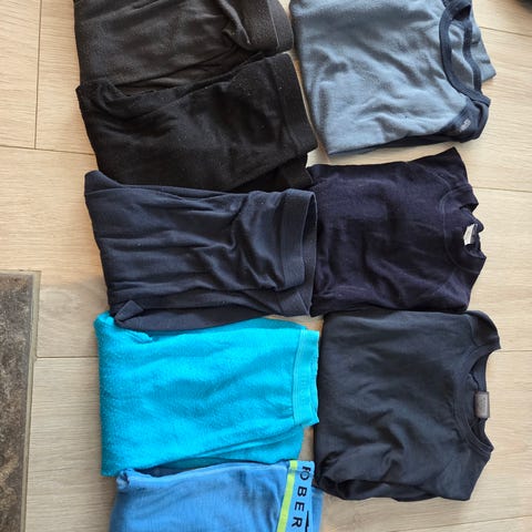 1 hel pyjamas i str 176/182, 1 pyjamas bukse str 176/182, 1 pyjamas t-skjorte str M, 3 pyjamas shortser str 176/182 selges for 50 kr.