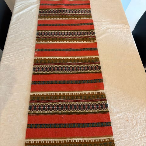 Brukt, Nydelig teppe i fine farger. Har ligget ned pakket enstund, så trenger en vask/lufting.