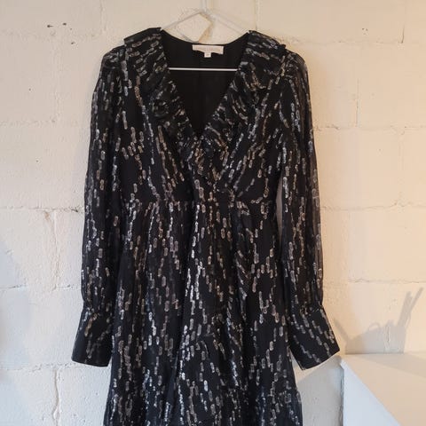 Selger en elegant og feminin kjole fra NAF NAF i størrelse 36.