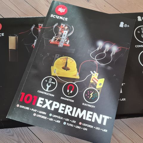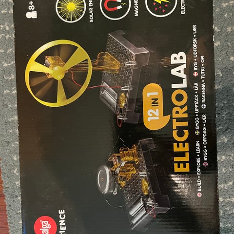 Et byggesett som nesten ikke er brukt! En del mangler men det er fortsatt mange eksperimenter som kan gjøres. Pappesken er litt ødelagt.