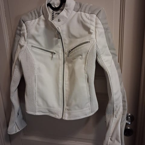 MC jakke i skinn til dame kjøpt i Danmark. Kun brukt en gang da den ikke passet. Str 38