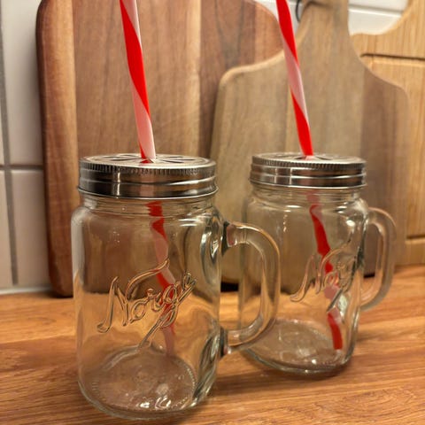 2 stk (25 cl) Norgesglass med to sugerør. Ubrukte, fortsatt i pakningen.