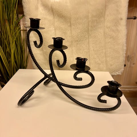 Høy, flott smijernsstake til kubbelys. Passer godt til brede, høye kubbelys.