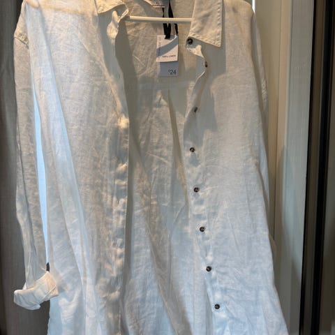 Ubrukt teskjorte i lin fra Line of Oslo. Fargen er lyseblå/grå.