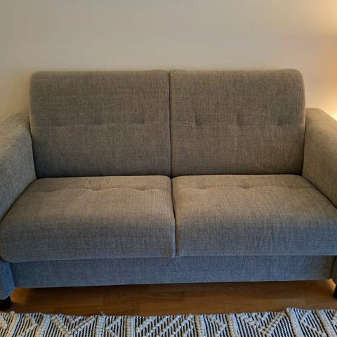 Selger vår flotte Care 3-seter sofa fra Brunstad i stoffet montecristo bearing sea med svarte ben. Sofaen har en veldig god sittekomfort, men den passer dessverre ikke hjemme hos oss.